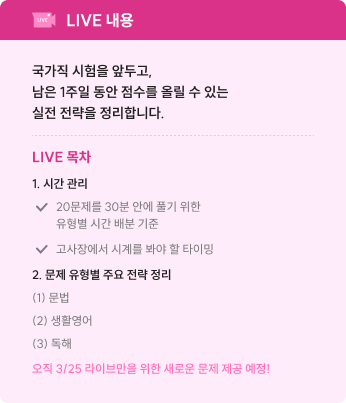 ※ 사전 알림 문자는 라이브 당일 발송됩니다.
